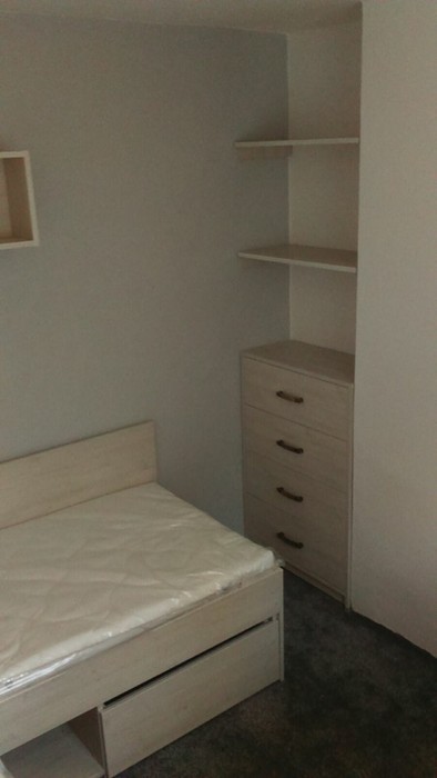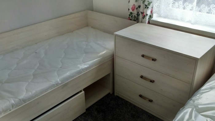 I zde nabízíme velkou škálu dekorů a barev laminových desek a je jen na Vás, si vybrat, jaká se hodí do místnosti. Postele vyrábíme na míru, podle potřeb zákazníka ať už s úložným prostorem nebo bez, výklopné nebo s výsuvnými šuplíky a můžeme je dodat včetně roštů a matrací.